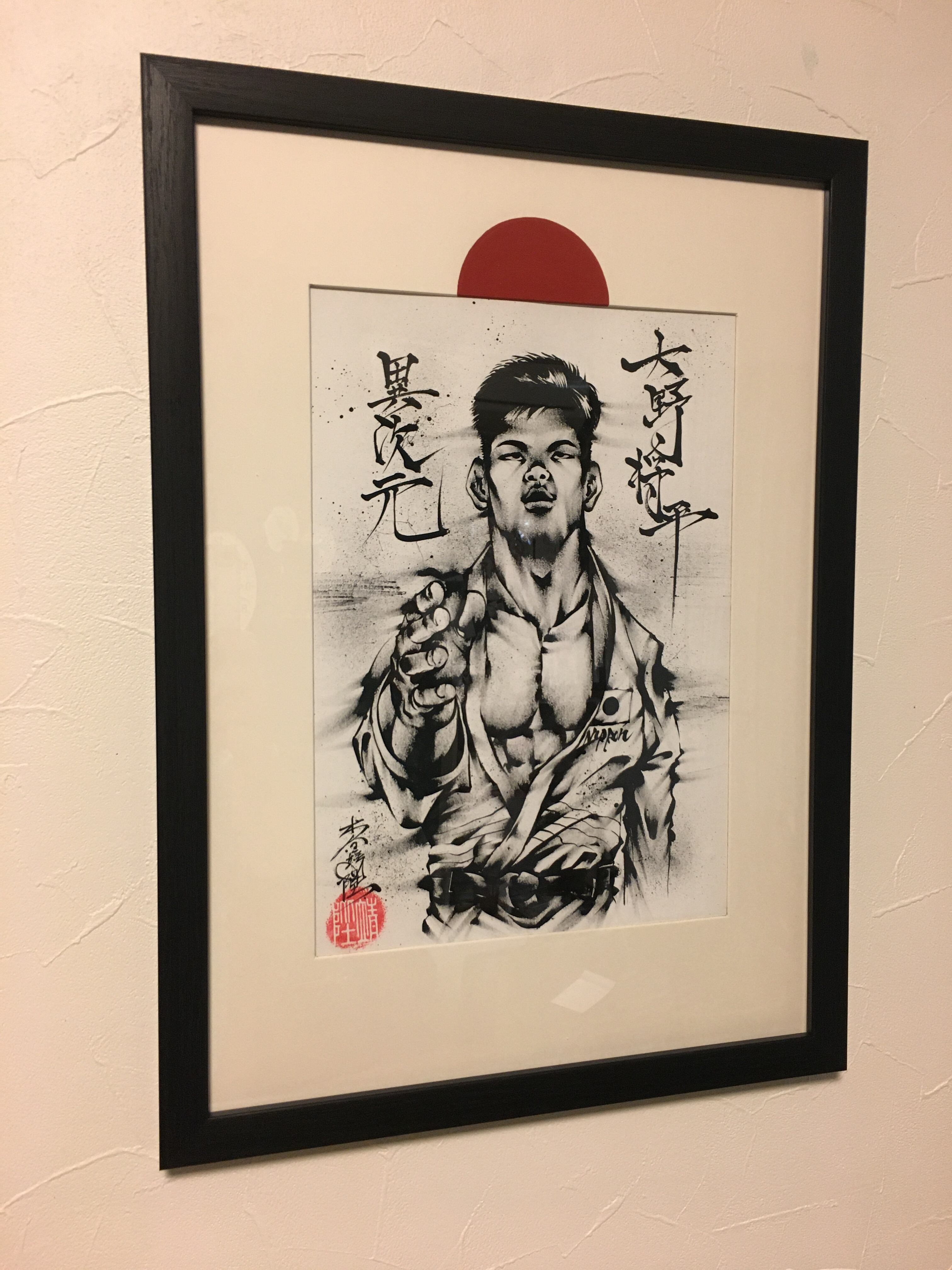 納品は写真のフレーム付きになります。大野翔平選手の東京オリンピック出場応援として、40分ドローイングした作品。