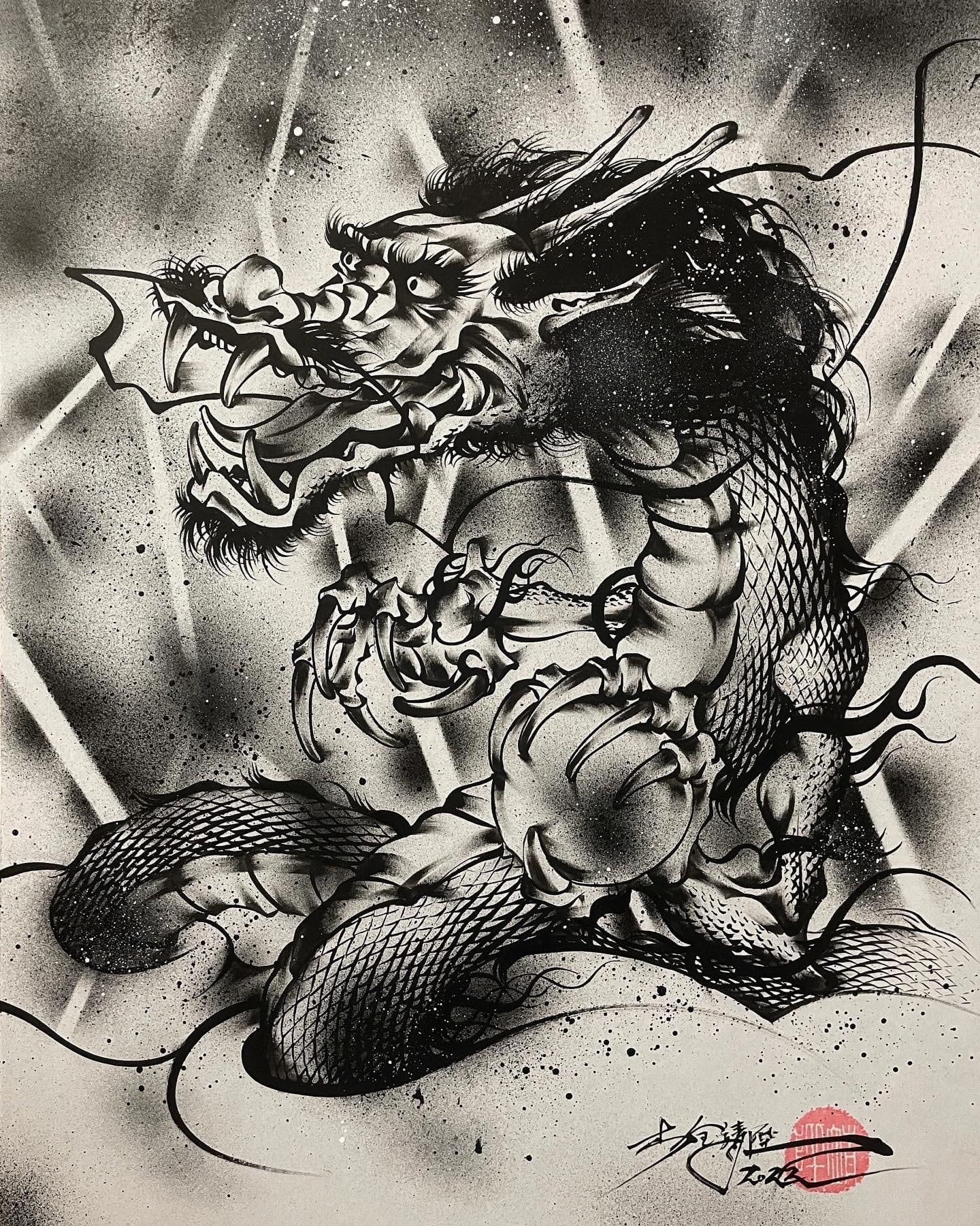 龍神墨画【霹靂神ーはたたがみー】額装付